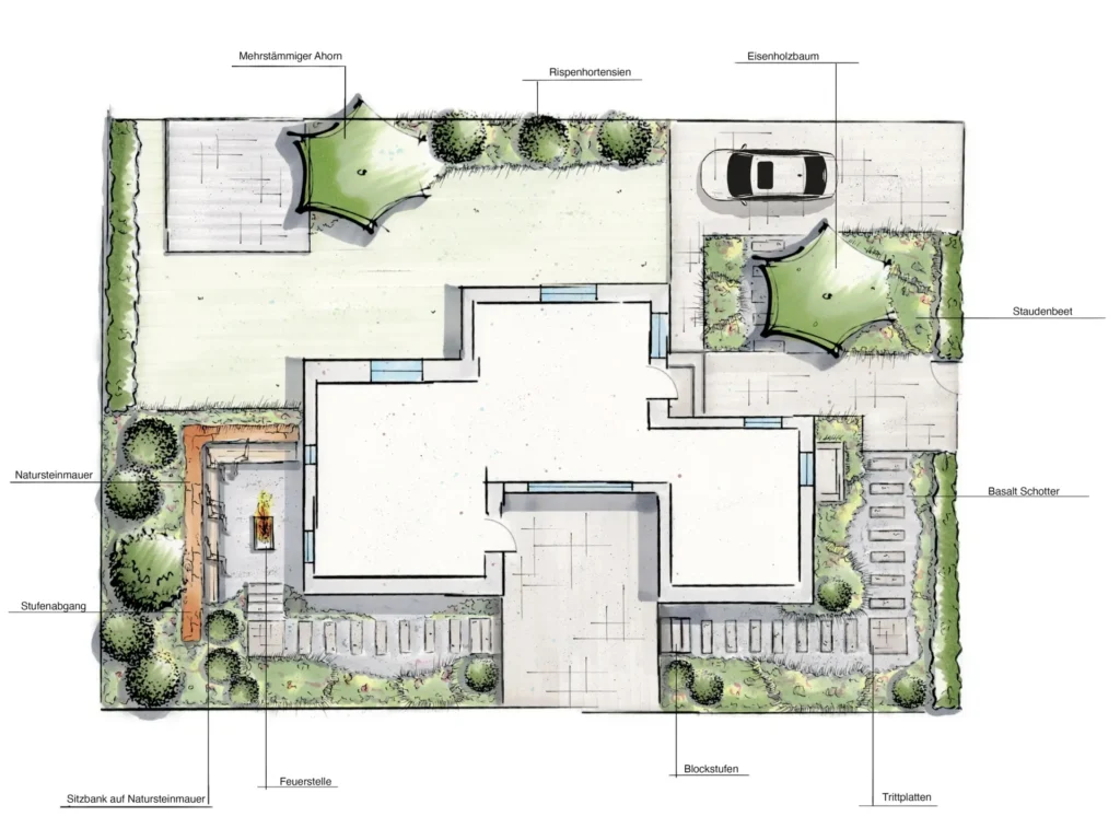 Eine fundierte Planung ist der erste Schritt zu einem Garten, der wirklich zu Ihnen passt. Wir beginnen mit einem persönlichen Gespräch, in dem wir zuhören, Fragen stellen, Ideen sammeln. Dann analysieren wir die Gegebenheiten vor Ort: Licht, Boden, Höhenverhältnisse, Blickachsen. Auf dieser Grundlage entwickeln wir ein stimmiges Konzept, das sowohl Ihre Wünsche als auch funktionale und gestalterische Anforderungen berücksichtigt.